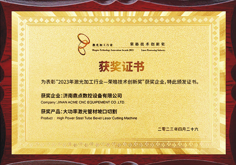 公司堅持研發立企、創新興企。公司自主研發的“大功率激光管材坡口切割技術”打破國外行業壟斷,讓國內普通激光切割頭也能實現±45°坡口切割,入圍山東省創新能力提升工程項目并獲2023年激光加工行業“榮格技術創新獎”。是“大功率激光管材坡口切割關鍵技術”濟南市工程研究中心,濟南市“一企一技術”研發平臺,已取得授權知識產權120項。