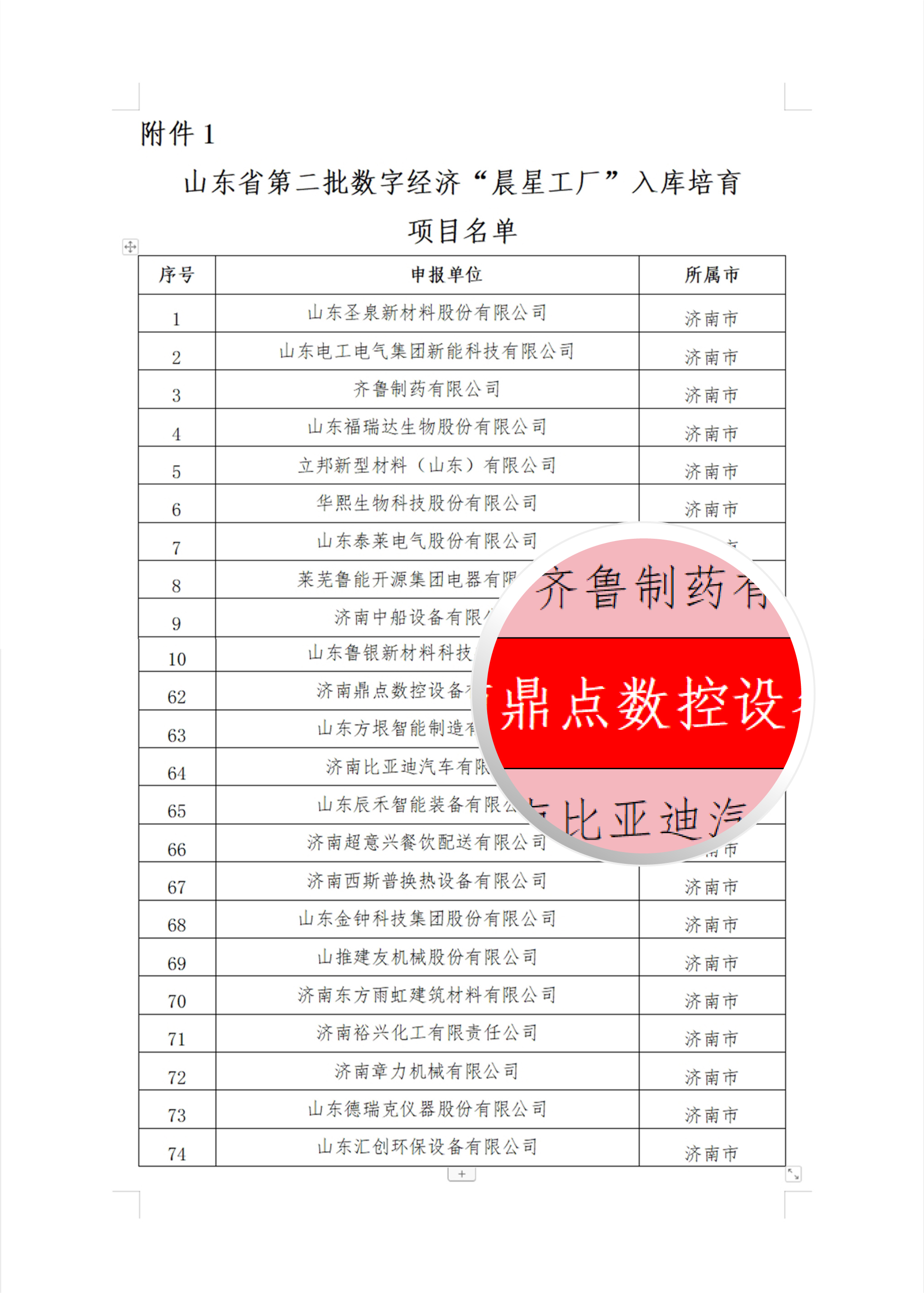 近日山東省工業和信息化廳公布了第二批數字經濟“晨星工廠”名單,濟南鼎點數控設備有限公司(以下簡稱“鼎點激光”)成功入選培育項目!與鼎點激光一同入選的還有山東圣泉新材料股份有限公司、山東電工電氣集團新能科技有限公司、齊魯制藥有限公司、山東福瑞達生物股份有限公司等知名企業。
